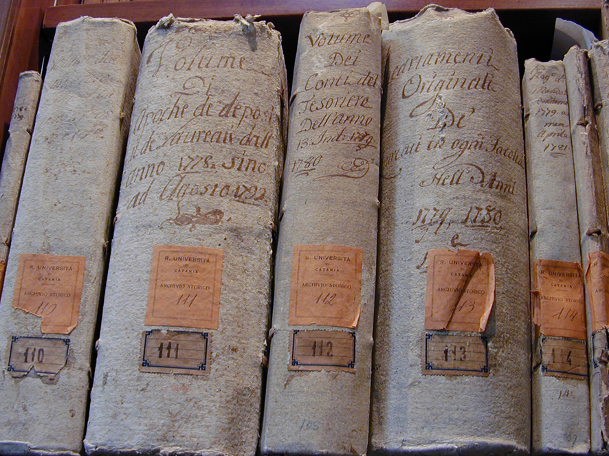 La documentazione dei primi secoli dell’Ateneo (XV-XVII) purtroppo è stata in gran parte perduta nel rogo dell’archivio storico del Comune di Catania (1944). Ciò che ne sopravvive risulta conservato o disperso in varie sedi, locali, nazionali ed anche estere. In particolare, i registri antichi delle lauree (1449-1779) sono conservati presso l’Archivio Storico dell’Arcidiocesi di Catania.